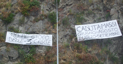 Scilla “Deriva presumibilmente da lavorazioni prive di autorizzazioni” il masso gigante che l’altro ieri pomeriggio si è staccato da un costone sovrastante l’A3 scaraventandosi sulla corsia di sorpasso, in direzione nord, qualche metro prima dello svincolo di Scilla (al km 424). E’ quanto ipotizzato dai primi sopralluoghi effettuati dai tecnici Anas, dai Vigili del Fuoco e dall’Autorità di Bacino sul luogo dell’accaduto. Così spiega l’ultimo comunicato diramato dall’Anas, che annuncia pure il protrarsi provvisorio della chiusura del tratto A3 in questione. Tratto che rimane chiuso, dunque. Con deviazioni sulla strada statale 18 “Tirrenia Inferiore”, tra Scilla e S. Trada, per i mezzi leggeri e sulla statale 106 “Jonica”, tra Reggio Calabria e Rosarno, per i mezzi pesanti. Da qui traffico in tilt, nella mattinata di ieri, all’uscita di S. Trada, sulla statale 18 ed ovviamente nel centro di Scilla. Lunghissime code di mezzi si sono formate sin dalle prime ore del mattino, con conseguenti disagi anche per i residenti. E’ andata decisamente meglio nel tardo pomeriggio, quando le automobili in transito sono notevolmente diminuite.