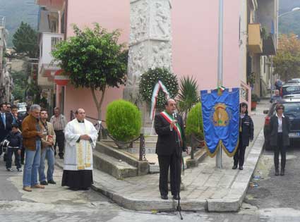 La riflessione del primo cittadino inizia dal processo lungo e sofferto che ha portato all'Unità nazionale fino alle ultime riforme, riferendosi in particolare al federalismo fiscale. A seconda del suo contenuto, questa riforma porterà per Ciccone o al << riequilibrio del Paese o alla ulteriore emarginazione e arretramento definitivo delle regioni meridionali>>. A pochi mesi dalla scadenza del suo mandato, giunto al decimo anno, non poteva mancare un messaggio per i cittadini. <<Rimarcare le cose che uniscono, tralasciare quelle che dividono>>. Dopo la benedizione del parroco al monumento dei caduti in guerra e il suo appello a <<recuperare i valori che uniscono>> le note del “Silenzio” e l'Inno di Mameli , eseguite dalla banda, hanno concluso la cerimonia. La stessa si è ripetuta davanti al monumento dei caduti di Favazzina.